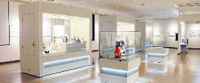 この資料館は図書館に併設された資料室です。水巻町をはじめとした遠賀川下流域の歴史・文化・自然をテーマにした資料館として、企画段階から打合せに参加させていただきました。最終的に製作・施工までお手伝いさせていただき、 企画から始めると1年以上がかった仕事でしたが、とても充実した日々を過ごさせていただきました。この仕事には、様々なクリエーターと一緒に仕事を進めていきました。設計士・イラストレーター・グラフィックデザイナー・カメラマン・ コピーライター・DTPデザイナー・FRP作家、造型アーティスト・画家(壁画)・WEBデザイナー・システムエンジニアなど、製作・施工業者の担当者を含めると数えきれません。