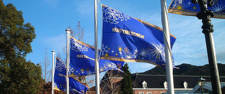 It is a winter season flag design of amusement facilities. In addition to this, we have contracted to produce flag designs such as spring, summer, autumn, Christmas etc until production. There are Tetoron type, polyester type, cotton type etc. for the flag material of the flag, depending on weaving method and thread density It is classified finely, each has advantages and disadvantages. In addition, there are various printing methods such as direct output, transfer output, silk printing, dyeing, etc. There are advantages and disadvantages as well. Flag design starts with selection based on the environment, cost and quantity.